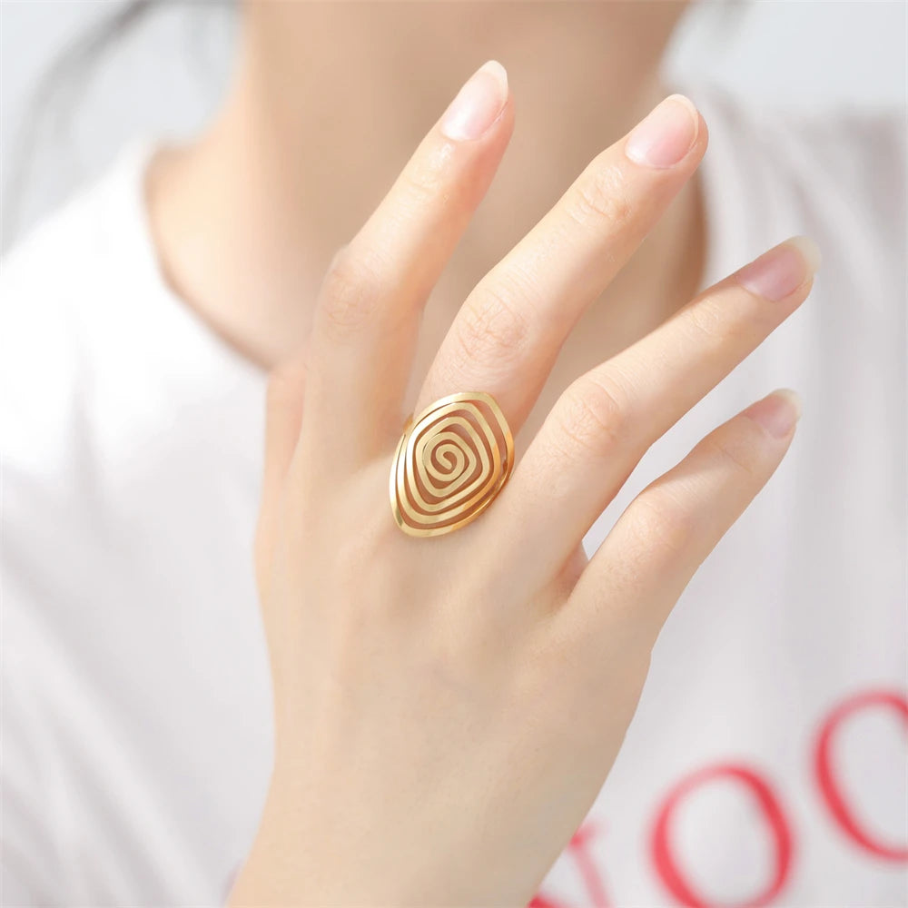 Women's Ring Stainless Steel Geometric Irregular Spiral Open Finger Rings Jewelry